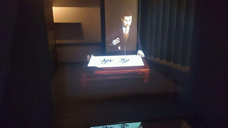 觀眾看到墻面上多個(gè)顯示設(shè)備中,每個(gè)顯示畫面中都有人物的視頻靜止影像。每臺電視下都有一個(gè)控制按鈕(可以是自動(dòng)感應(yīng)器),當(dāng)觀眾按到其中一個(gè)時(shí)(當(dāng)自動(dòng)感應(yīng)器撲捉有人接近 ……